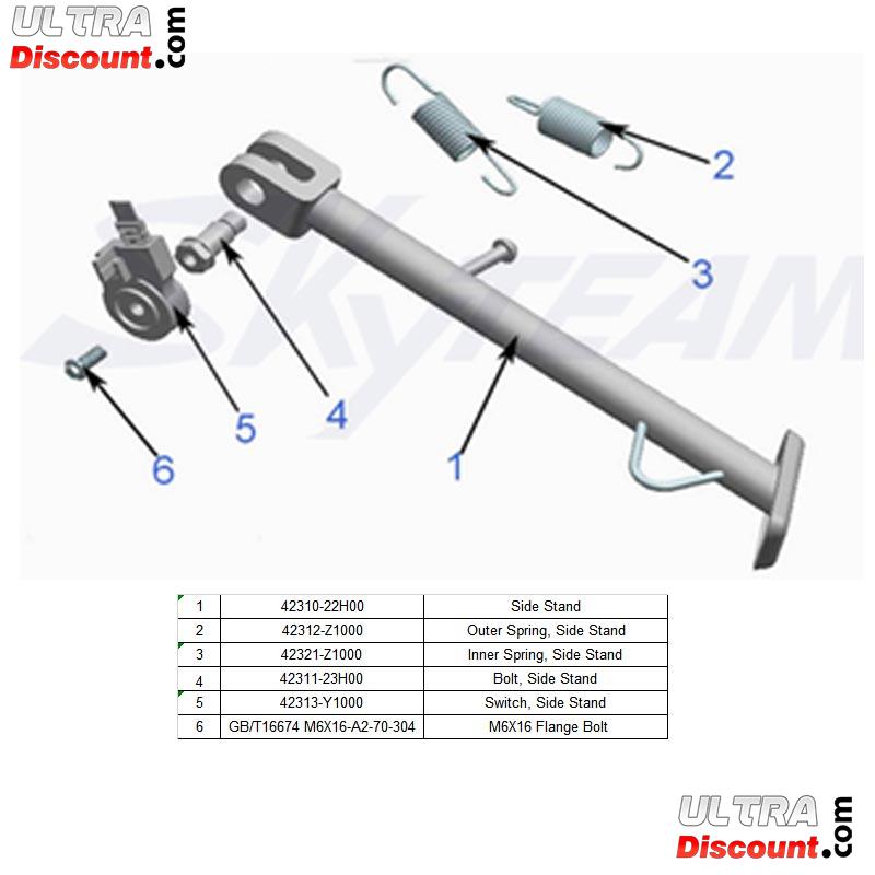 Cette béquille latérale est destinée aux Skyteam T-REX 50-125cc