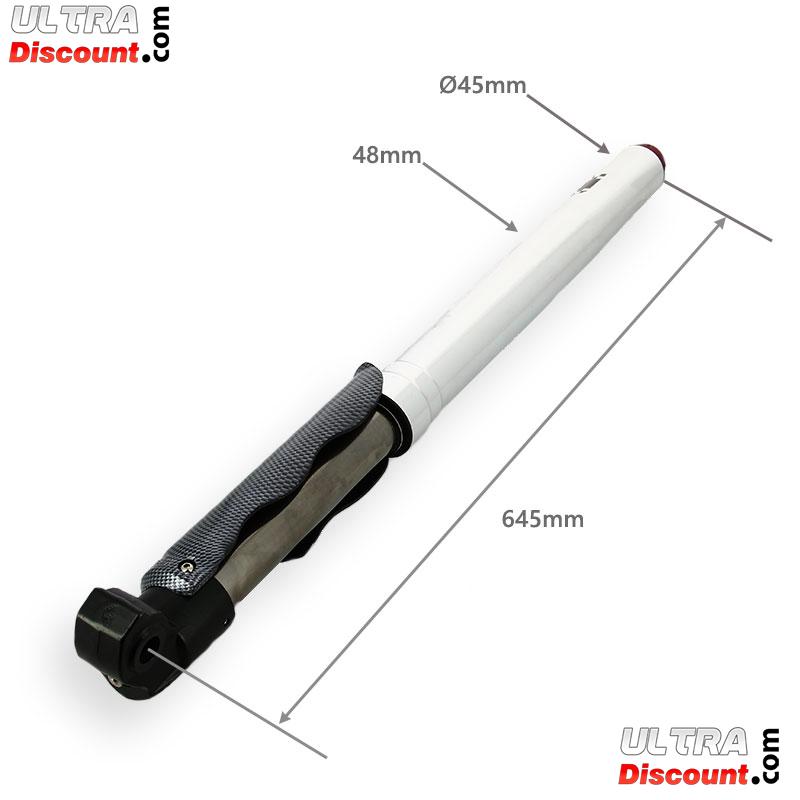 - Longueur : 645mm (distance entre le centre de l'axe de roue et le haut de la fourche,