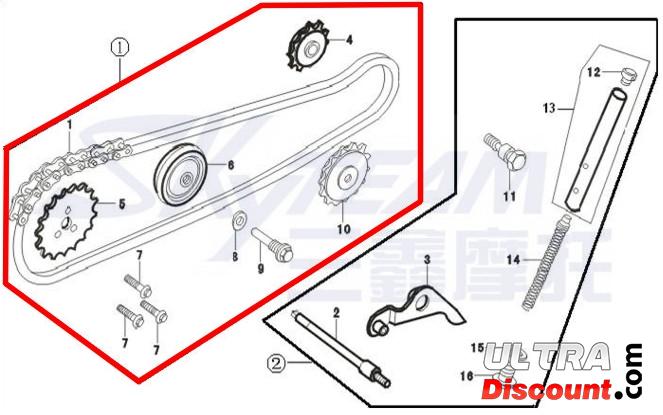 Kit chaîne de distribution 125cc pour Bubbly Skyteam Description