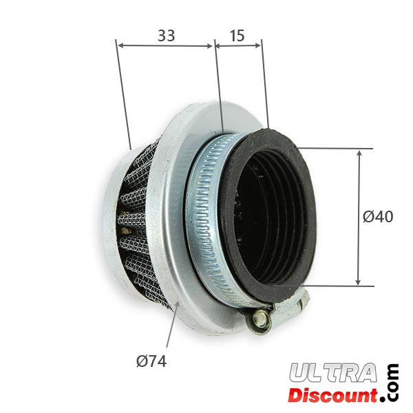 Ce filtre à air s'adapte sur les carburateurs d'origine possédant un adaptateur de 32mm ou de 40 mm.