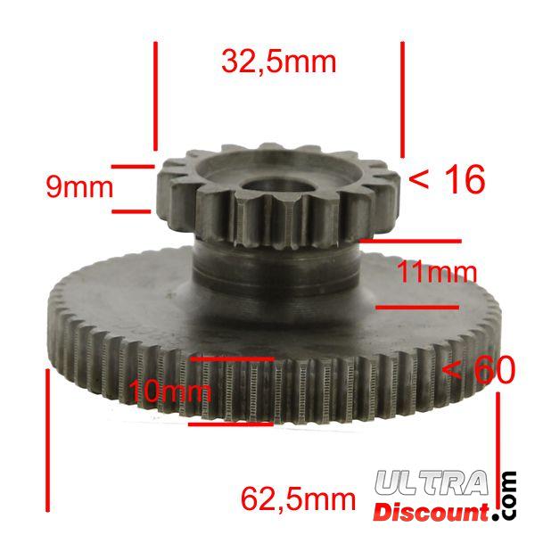 Pignon Double de Démarreur pour Quads Shineray 250cc STXE (16 Dents), Pièces Shineray 250 STXECe pignon double entrainé par le démarreur est destiné aux quads Shineray 250cc.