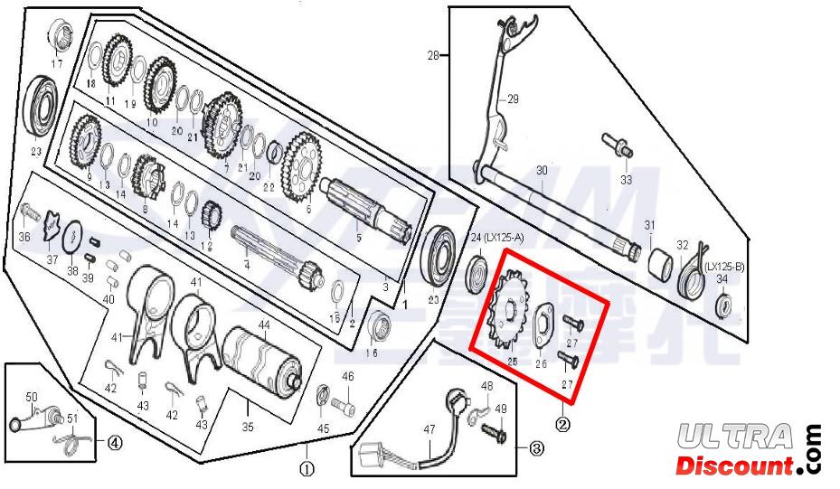 Pignon et fixations pour moteur 125cc pour Bubbly Skyteam Description