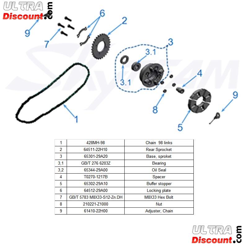 Support Couronne roue arrière est destiné aux T-Rex Skyteam 50cc, 110cc et 125cc.